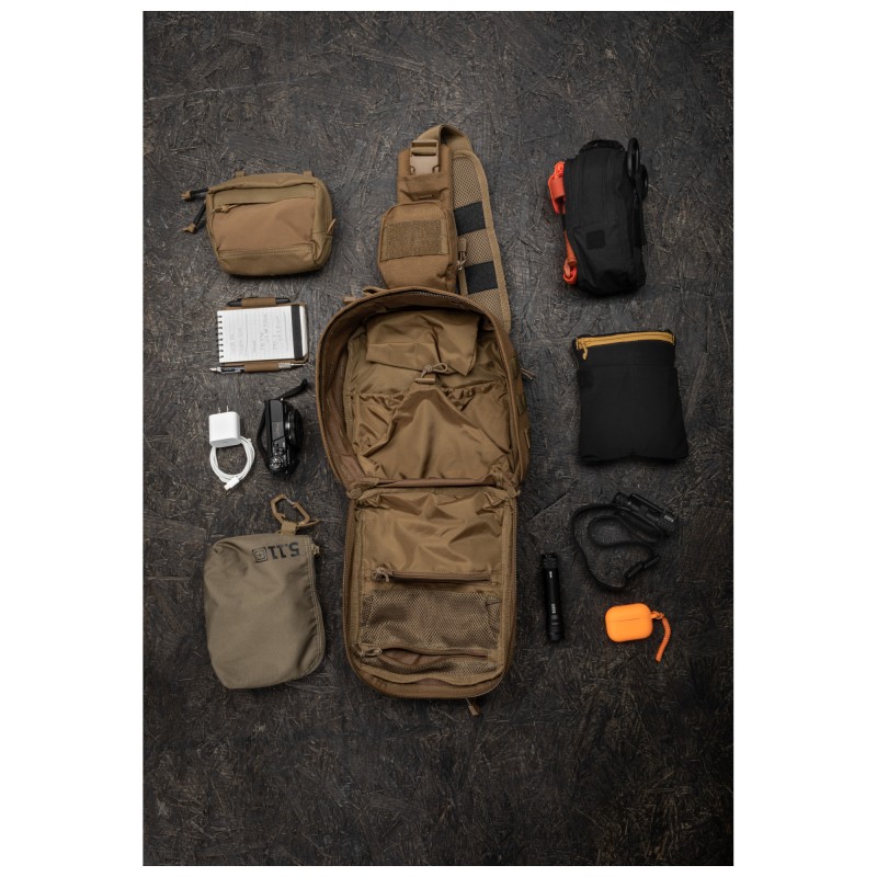 Tai vienas universaliausių 5.11 modelių – pakankamai talpus kasdieniams daiktams, tačiau išlieka kompaktiškas ir nevaržantis judėjimo.