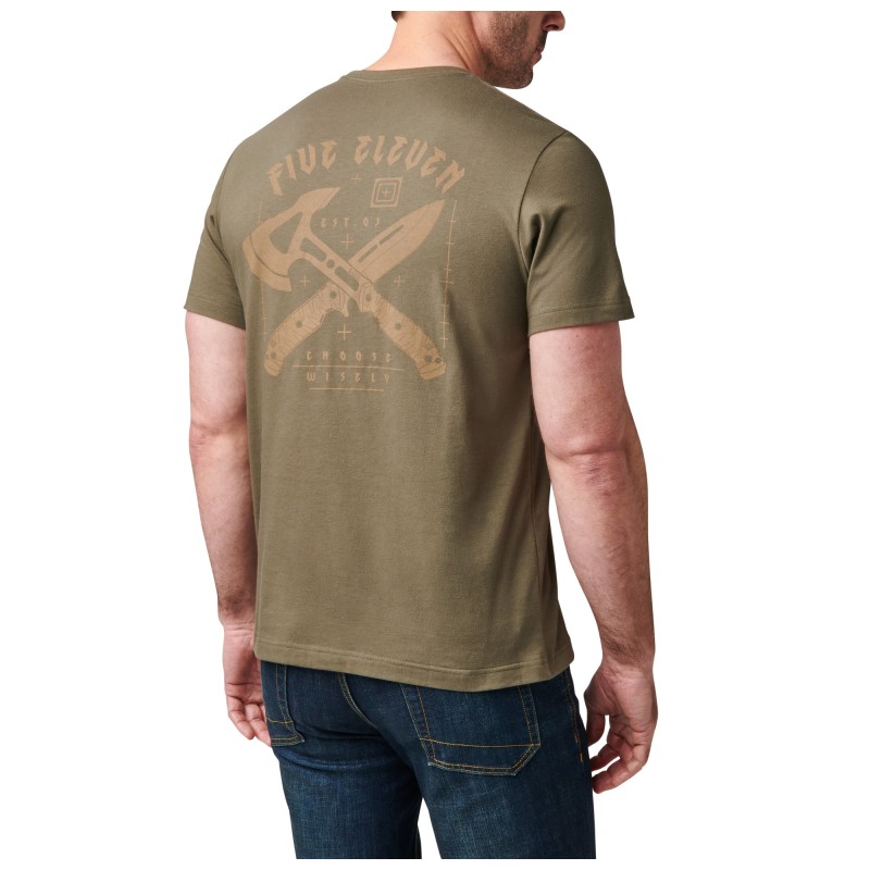 5.11 Tactical marškinėliai pagaminti iš 60% medvilnės/40% poliesterio. Medžiaga puikiai sugeria drėgmę, tinka aktyviam laisvalaikiui.