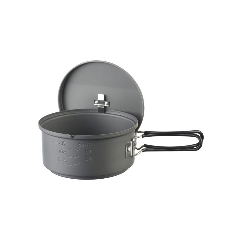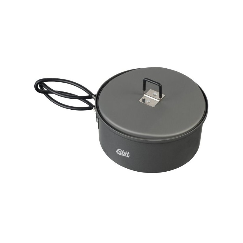 ESBIT viryklė su katiliuku 1000ml, pagamintu iš itin lengvo, kietai anoduoto aliuminio, sveria vos 314 g. Rinkiniui galima naudoti dvi 14g arba vieną 27g Esbit kietojo kuro tabletes.