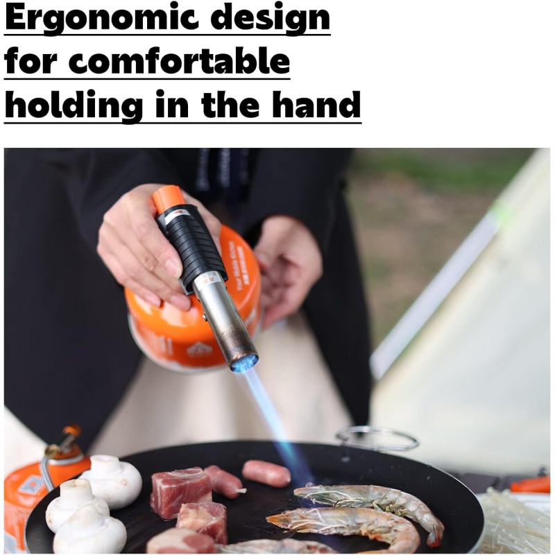 PLATUS PANAUDOJIMAS: šis degiklis idealiai tinka kepsniui ruošti, kepsniui kepti, paprikoms kepti ir sūriui tirpinti. Jis taip pat gali būti naudingas kurstant židinį, žvakes, anglies krosnelę ar stovyklavietėje.