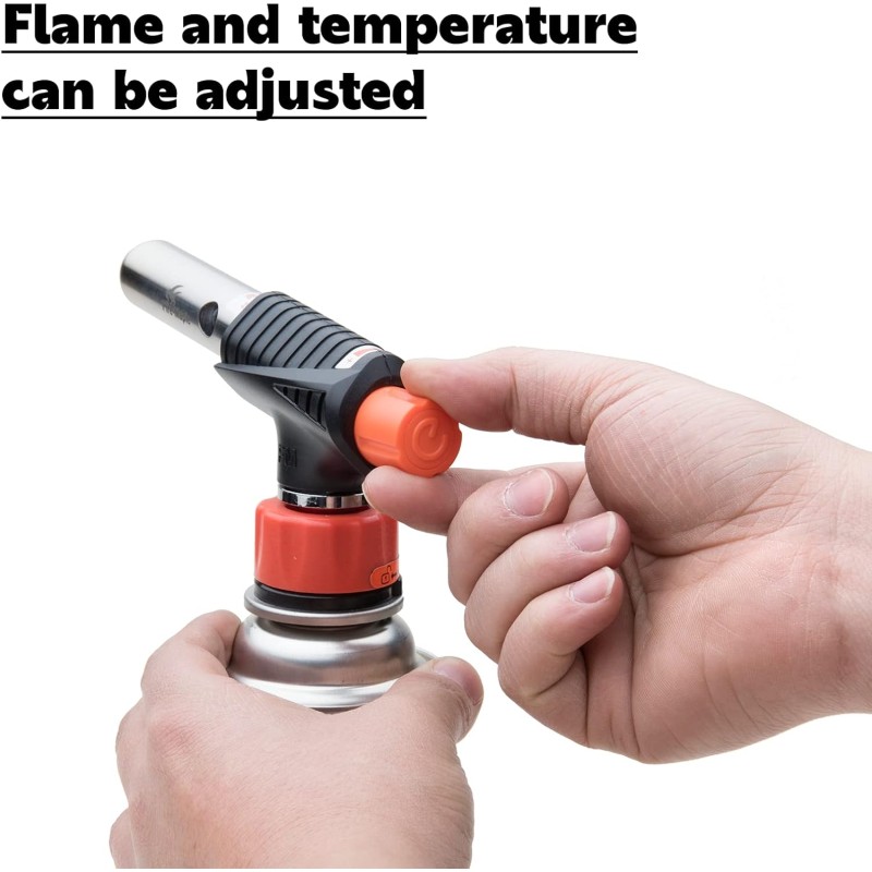 ILGAS IR SAUGUS: degiklis pagamintas iš nerūdijančio plieno, aliuminio lydinio ir inžinerinio plastiko. Ilgas kampinis antgalis saugo ranką nuo liepsnos.